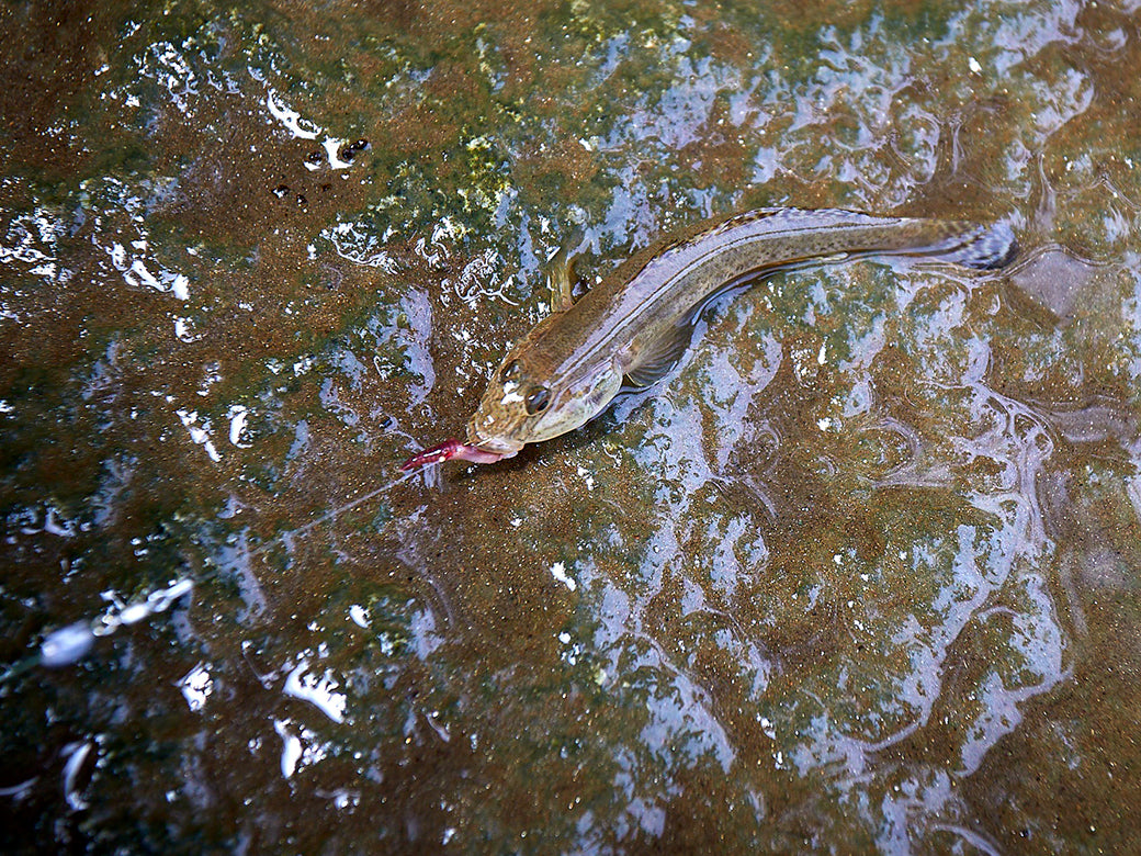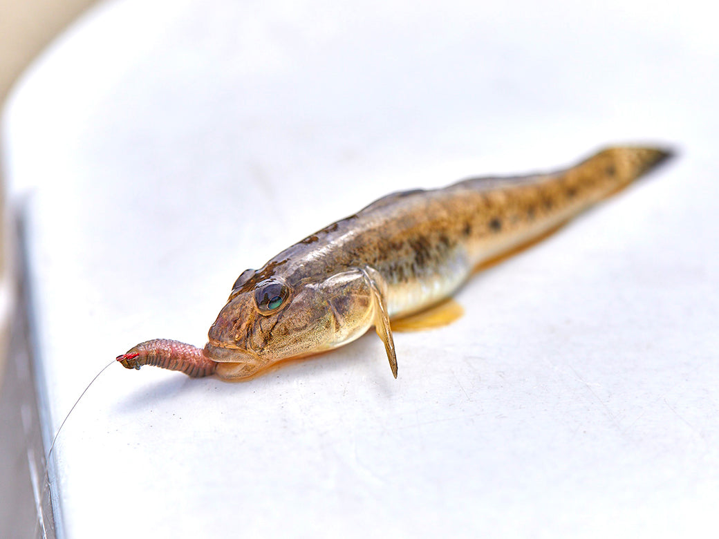 青イソメや石ゴカイとの相性も◎。垂らしを短めに付けて、テンポよく誘い出そう。