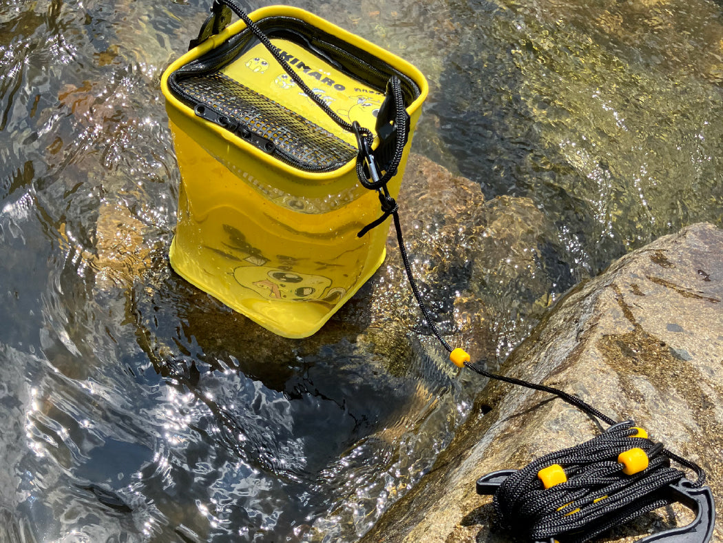 半分がメッシュ仕様。魚を逃がさず、水だけを入れられるから、観察中もずっと快適!